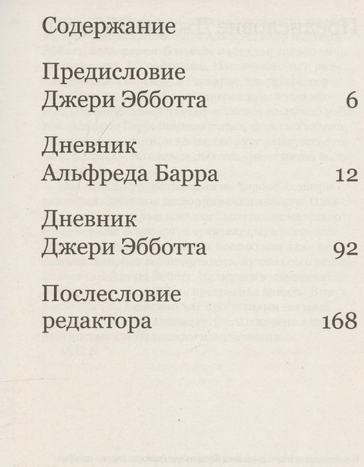 1927.–1928. gada ziemā Padomju Savienībā viesojās divi jauni amerikāņu mākslas vēsturnieki Alfrēds Bars un Džerijs Ebots. Drīz pēc atgriešanās no ceļojuma Bars kļuva par jaunizveidotā Ņujorkas Modernās mākslas muzeja direktoru, bet Ebots kļuva par viņa vietnieku. Ceļojot pa PSRS, viņi glabāja dienasgrāmatas, kurās iemūžināja kultūras situāciju paātrinātās sociālistiskās būvniecības sākuma un krievu avangarda laikmeta beigu priekšvakarā. Bars un Abots fiksēja savus iespaidus par jauniem teātra un kino repertuāriem, jaunās valdības nacionalizēto muzeju kolekciju apskatēm un tikšanos ar ievērojamākajām padomju kultūras personībām: Sergeju Eizenšteinu un Vsevolodu Mejerholdu, Mozu Ginzburgu un Sergeju Tretjakovu, Aleksandru Rodčenko un Varvaru Stepanovu.
