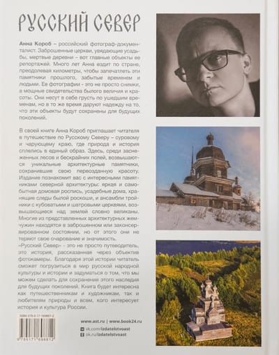 Anna Koroba savā grāmatā aicina lasītāju doties ceļojumā uz Krievijas ziemeļiem - skarbu un šarmantu zemi, kur daba un vēsture savijas vienā tēlā. Šeit, starp sniega nocirstiem mežiem un nebeidzamiem laukiem, unikāli arhitektūras pieminekļi, kas saglabājuši savu pirmatnējo skaistumu, paceļas.