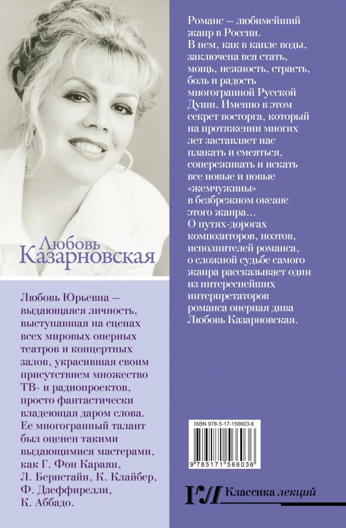 Romantiskais žanrs Krievijā ir iecienītākais žanrs. Tajā kā ūdens pilienā slēpjas viss daudzšķautņainās krievu dvēseles spēks, spēks, maigums, kaisle, sāpes un prieks. Tas ir sajūsmas noslēpums, kas jau daudzus gadus liek mums raudāt un smieties, iejusties un meklēt arvien jaunas un jaunas «pērles» šī žanra bezgalīgajā okeānā… Viena no interesantākajām romances interpretētājām, operas dīva Ļubova Kazarnovskaja, stāsta par romances komponistu, dzejnieku, izpildītāju ceļiem un ceļiem un paša žanra sarežģītajiem likteņiem.