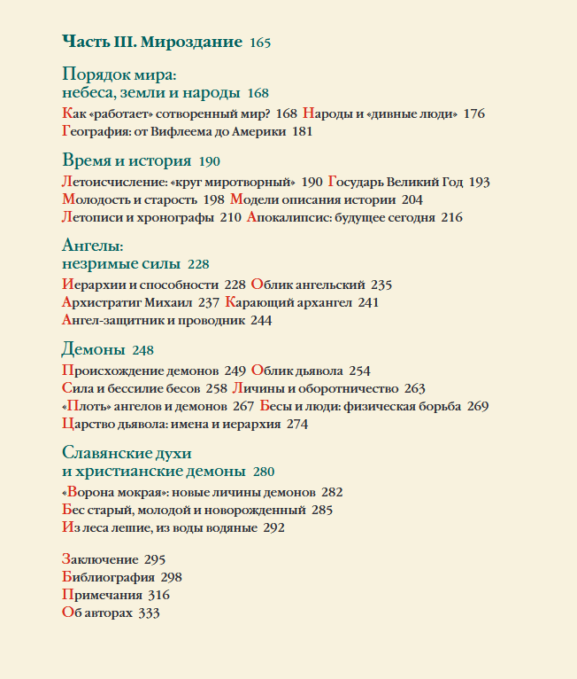 Autori skar daudzas tēmas, tostarp retas un mazpazīstamas, un iekļauj tās plašā kontekstā. Ko viduslaiku cilvēks domāja par zemes un debesu spēku? Kā viņš iztēlojās ģimenes un valsts iekārtu, Debesis un pazemes pasauli? Ko viņš domāja par Baznīcu, grēkiem un sakramentiem? Kā viņš saprata laiku un vēsturi? Un kāda loma tajā visā bija neredzamajiem gariem, eņģeļiem un dēmoniem? Grāmatā ir vairāk nekā 140 ilustrāciju, tostarp reti arhīvu attēli. Viduslaiku kultūra ir gan tāla no mūsdienām, gan ļoti tuva tām. Daudzas tradīcijas, ieradumi un pat frāzes, kas kļuvušas par mūsu ikdienas dzīves sastāvdaļu, nāk no šī laikmeta. Grāmata veltīta priekšstatiem par cilvēku, sabiedrību un varu, par laiku un vēsturi, par zemes un debesu pasauli, par cilvēkiem, eņģeļiem un dēmoniem. "Viduslaiku kultūra joprojām ietekmē mūsu valodu, mākslu, literatūru un maz pamanāmus ieradumus. Tā ir pilna noslēpumu, neparastu ideju, pārsteidzošu prakšu, par kurām reti tiek rakstīts vai runāts. Krievu viduslaiku kultūrai nav veltīts tik daudz populāru grāmatu kā Eiropas kultūrai. Mēs vēlējāmies par to pastāstīt savā veidā. Aprakstīt retas idejas un neparastas prakses, bet vienlaikus sniegt vispārēju viduslaikiem svarīgu ideju panorāmu."