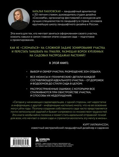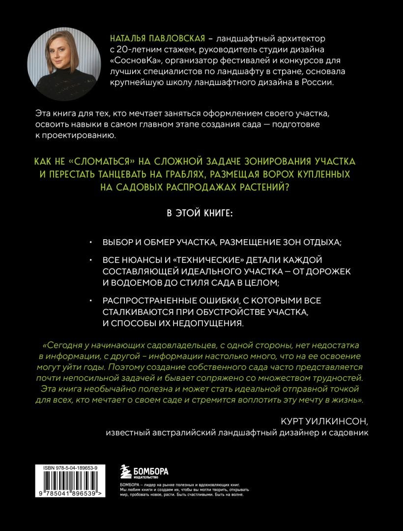 ? Šīs grāmatas autore reiz saskārās ar problēmu, kā atrast vietu vēl vienam peoniju krūmam vai egles stādiņam. Haotiskas stādīšanas rezultātā lielākā daļa augu neiesakņojās, un visi ieguldītie līdzekļi un pūles tika pazaudēti kopā ar nokaltušiem ziediem. Šodien Natālija Pavlovska ir ainavu arhitekte ar 20 gadu pieredzi un lielākās ainavu dizaineru skolas īpašniece Krievijā. Šajā grāmatā viņa dalās dārza plānošanas noslēpumos ar tiem, kuri sapņo par skaistu zemes gabalu, bet nezina, ar ko sākt. Grāmatas pirmā daļa veltīta dārza stilistikai un pieejamajiem dizaina risinājumiem - no elegantiem celiņiem līdz mākslīgām ūdenstilpnēm. Otrajā daļā pēc vēlmju noteikšanas autore māca, kā izveidot unikālu ainavas projektu atbilstoši zemes gabala lielumam un citām īpašībām. Šī grāmata nav tikai ideju apkopojums, bet gan soli pa solim izstrādāts ceļvedis, kas rūpīgi pavada jūs ceļā uz jūsu sapņu dārza izveidi.