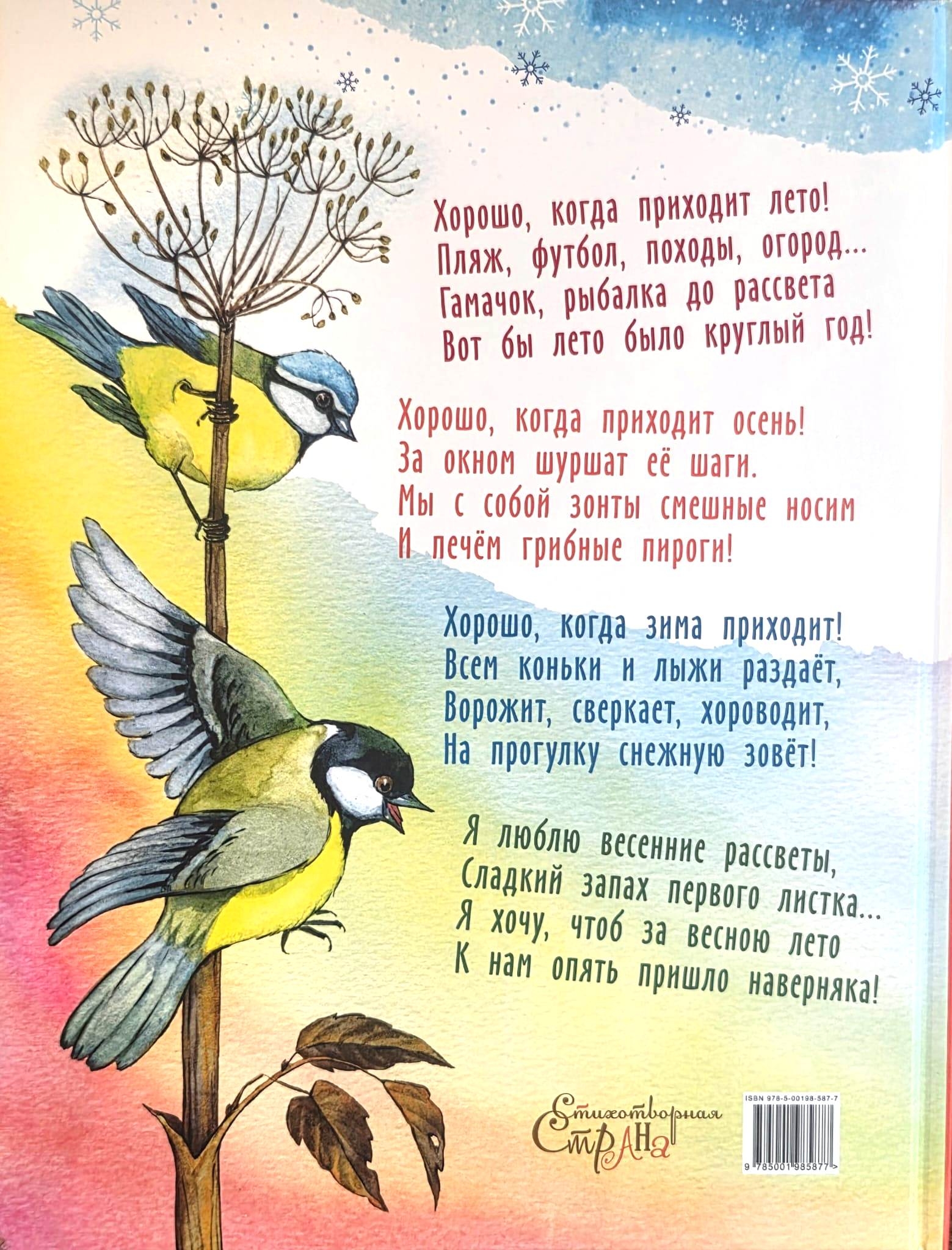 Vai vēlaties uzzināt, kurš gadalaiks ir vislabākais? Tad atveriet Natālijas Karpovas grāmatu un kopā ar dzīvespriecīgajiem, viesmīlīgajiem tēliem viņas dzejoļos apbrīnojiet saules starus, ieklausieties jūras maigajā čukstā, vāciet krāsainu rudens lapu pušķus un izklaidējieties, sacīkstēs pa apledojušām takām... Un jūs droši vien piekritīsiet autorei, ka vislabākais gadalaiks ir tas, kas tieši tagad dāvā mums savus brīnumus.