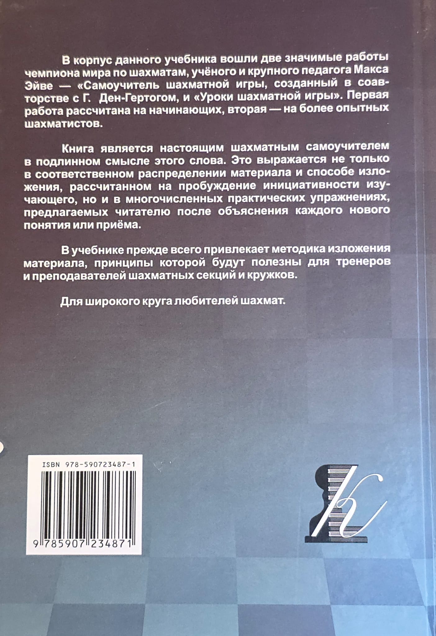 Mācību grāmatas galvenā pievilcība slēpjas tās pasniegšanas metodē, kuras principi būs noderīgi šaha klubu un grupu treneriem un skolotājiem.
