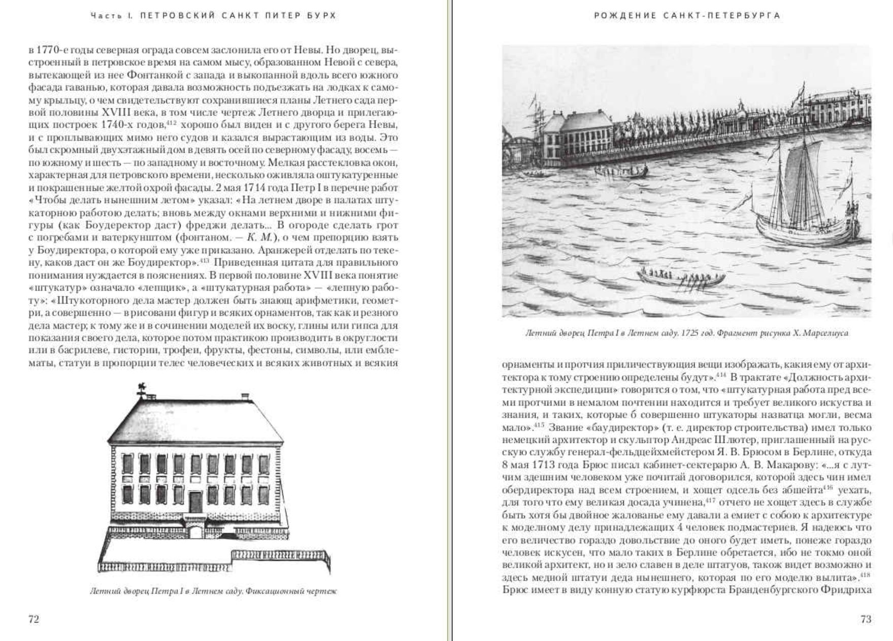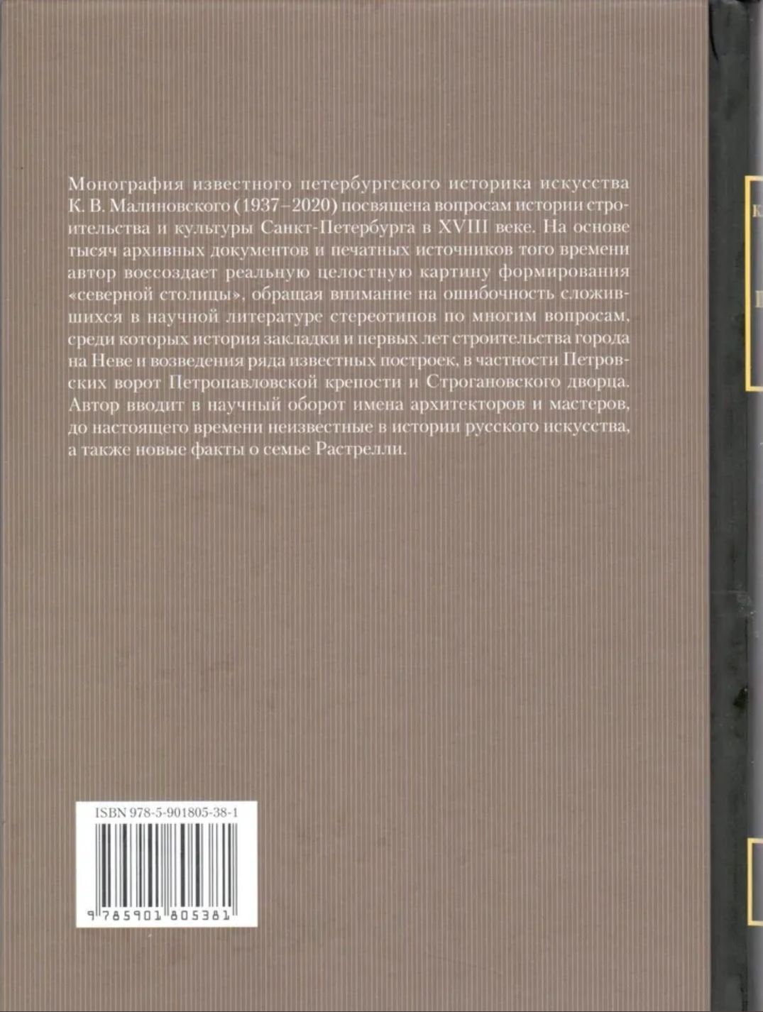 Šī Sanktpēterburgas mākslas vēsturnieka K. V. Maļinovska monogrāfija ir veltīta Sanktpēterburgas celtniecības un kultūras vēsturei 18. gadsimtā. Balstoties uz tūkstošiem arhīva dokumentu un iespieddarbu no šī perioda, autors rekonstruē patiesi visaptverošu "ziemeļu galvaspilsētas" veidošanās ainu, izceļot iedibināto zinātnisko stereotipu maldīgumu daudzos jautājumos, tostarp pilsētas dibināšanas un agrīnās celtniecības vēsturē pie Ņevas upes un vairāku slavenu ēku, tostarp Pētera un Pāvila cietokšņa Petrovska vārtu un Stroganova pils, celtniecībā. Autors iepazīstina ar iepriekš Krievijas mākslas vēsturē nezināmu arhitektu un meistaru vārdiem, kā arī jauniem faktiem par Rastrelli ģimeni.