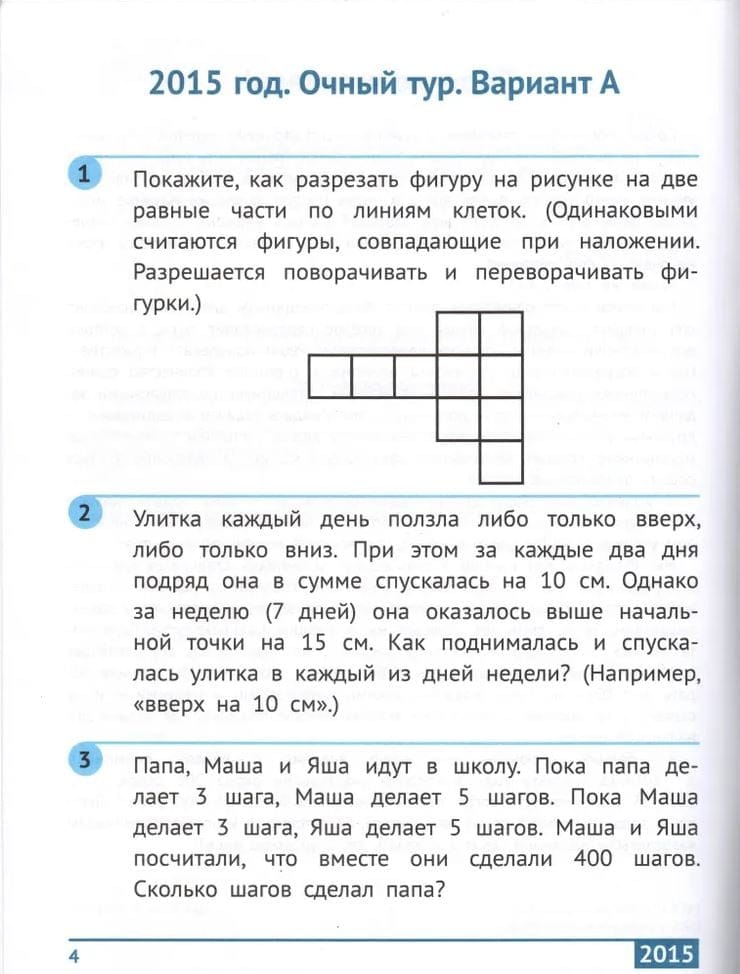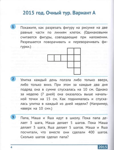 Sanktpēterburgā septiņus gadus notiek pamatskolas matemātika. Pagājušajā gadā dalībnieku skaits bija vairāk nekā 21 000 studentu. Šajā krājumā iekļauti olimpiādes uzdevumi 4. klasei visu tās pastāvēšanas gadu garumā. Tie ir interesanti – gan sižetā, gan sarežģītības līmenī – uzdevumi, kas palīdzēs bērniem iejusties, sagatavoties turpmākām olimpiādēm, “inficēt” ar vēlmi tās atrisināt un darīt ar prieku!
