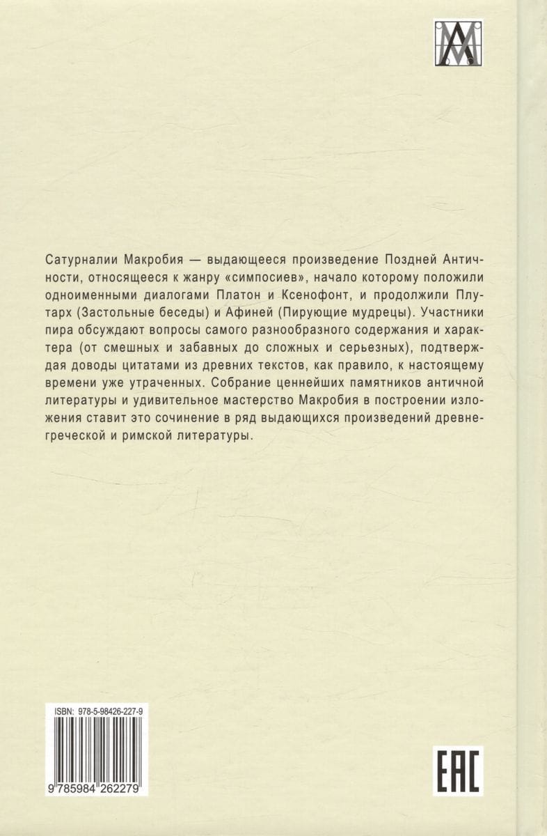 Makrobija Saturnālijas ir izcils vēlās antīkā laikmeta darbs, kas pieder pie "simpoziju" žanra, kuru aizsāka Platons un Ksenofonts ar tāda paša nosaukuma dialogiem un turpināja Plutarhs (Galda sarunas) un Atēnejs (Svētku gudrības). Svētku dalībnieki apspriež visdažādākā satura un rakstura jautājumus (no smieklīgiem un amizantiem līdz sarežģītiem un nopietniem), pamatojot savus argumentus ar citātiem no antīkajiem tekstiem, kas parasti ir zuduši. Vērtīgāko antīkās literatūras pieminekļu apkopojums un Makrobija apbrīnojamā prasme stāstījuma uzbūvē ierindo šo darbu starp izcilākajiem sengrieķu un romiešu literatūras darbiem.