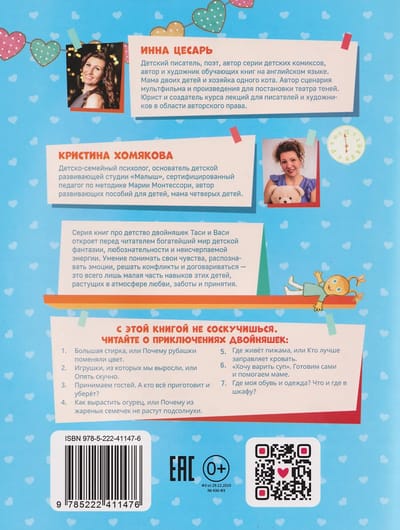 Dvīnes Tasja un Vasja dzīvo laimīgā ģimenē ar saprotošiem un atbalstošiem vecākiem un gādīgiem, uzmanīgiem vecvecākiem. Šī grāmata, kurā iekļautas psihologa piezīmes, pastāstīs, kā mīlestība un rūpes izpaužas lielā, saliedētā ģimenē.