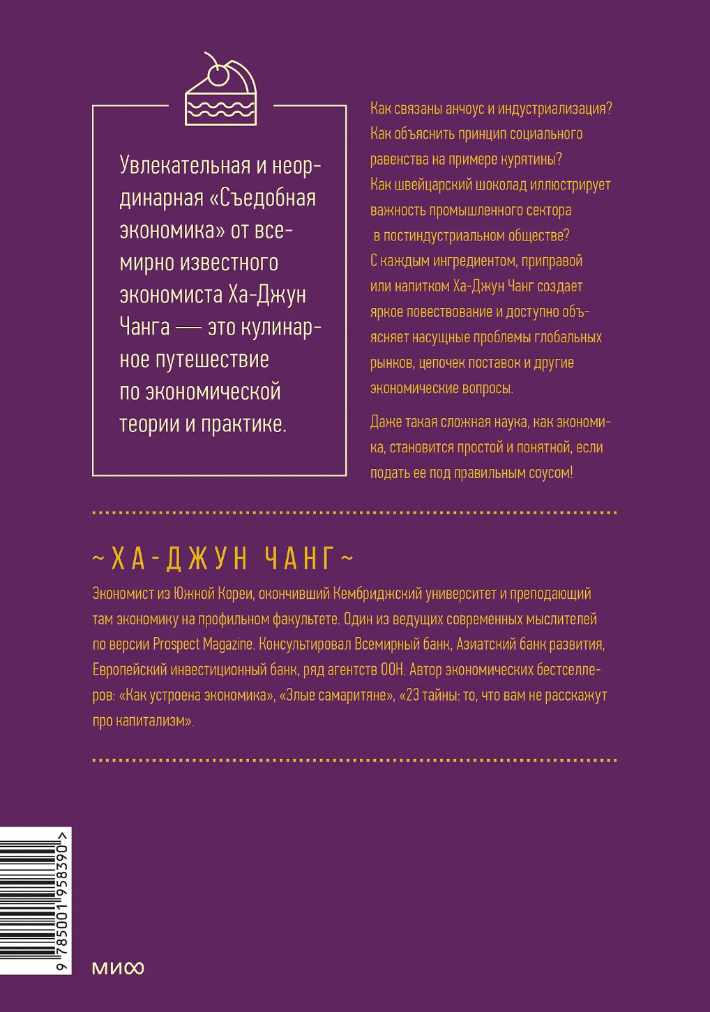 Pasauls aizraujošs un neparasts pasaulslavenā ekonomista Ha-Džuna Čanga (Ha-Joon Chang) darbs "Ēdamā ekonomika" ir kulinārijas ceļojums pa ekonomikas teoriju un praksi. Kā ir saistīti anšovi un industrializācija? Kā ar vistas gaļas piemēru var izskaidrot sociālās vienlīdzības principu? Kā Šveices šokolāde ilustrē rūpniecības nozares nozīmi postindustriālā sabiedrībā? Par katru sastāvdaļu, garšvielu vai dzērienu Ha-Džuns Čangs veido spilgtu stāstījumu un pieejamā veidā izskaidro aktuālos globālo tirgu, piegādes ķēžu un citus ekonomikas jautājumus. Pat tik sarežģīta zinātne kā ekonomika kļūst vienkārša un saprotama, ja to pasniedz ar pareizo mērci!