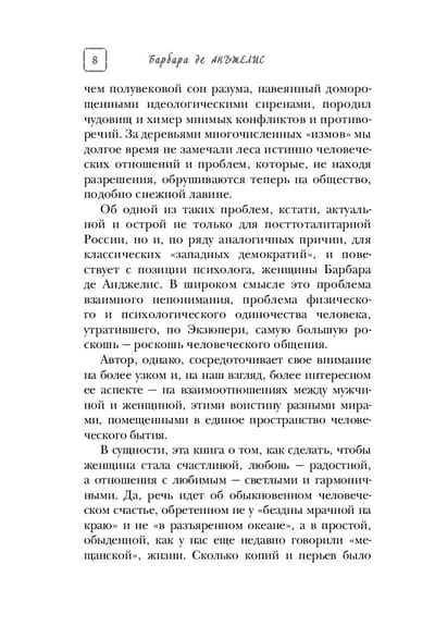 Barbara de Angelis ir viena no pasaulē populārākajām attiecību ekspertēm un vairāk nekā 20 visvairāk pārdoto grāmatu autore. Viņa vada autortelevīzijas raidījumu un ikdienas radio programmu, kā arī vada seminārus tiem, kuri vēlas izprast sevi un izveidot veiksmīgas attiecības ar saviem mīļajiem. "Noslēpumi par vīriešiem, kas jāzina katrai sievietei" - tām, kuras saprot, ka daudzējādā ziņā no viņām pašām ir atkarīgs, kādas būs attiecības ar partneri.