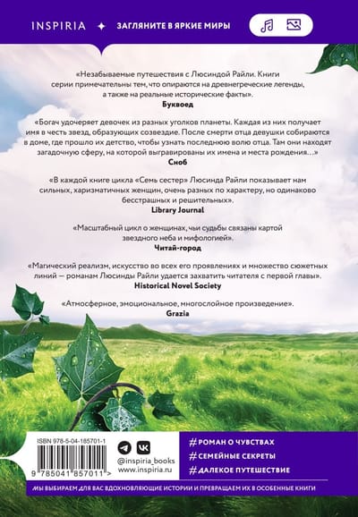 Pateicoties Pa Salt adoptētāja novēlējumam, katra no sešām māsām Deplesi ir varējusi doties unikālā ceļojumā uz savām senču zemēm un uzzināt savas dzimšanas noslēpumu. Taču viens jautājums joprojām nav atbildēts. Kas ir viņu pazudusī septītā māsa, kuru Pa Salts nekad nebija adoptējis? Kur viņa ir meklējama? Deplesi māsām ir tikai viens pavediens - gredzens ar septiņiem smaragdiem. No Jaunzēlandes līdz Kanādai, Francijai un Īrijai - drosmīgās Deplesi ģimenes sievietes atkal ir ceļā. Viņas atklās neparasto stāstu par mīlestību un upurēšanos, kas aizsākās gandrīz pirms gadsimta.