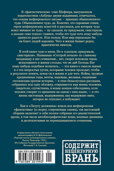 Šefnera "fantastiskajā" sējumā, kas divos izdevumos izdots Azbuka izdevniecībā, tika atzīmēts, ka Šefnera rakstīšanas pamatā ir parasta brīnuma princips. Parasts brīnums, jā. Protams, tie ir pieticīgi ģēniji, Šefnera stāstu varoņi, kuriem brīnumi nemaz nav brīnumi — viņi to izdarīja, viņi to izdomāja, viņi to sakārtoja, un tad tas vienkārši notika: galvenais ir tas, lai šis brīnums kādam sagādā prieku. Vai labumu. Vai pārveido pasauli labu cilvēku labā. Kas dzīvē notiek reti, ja vispār.