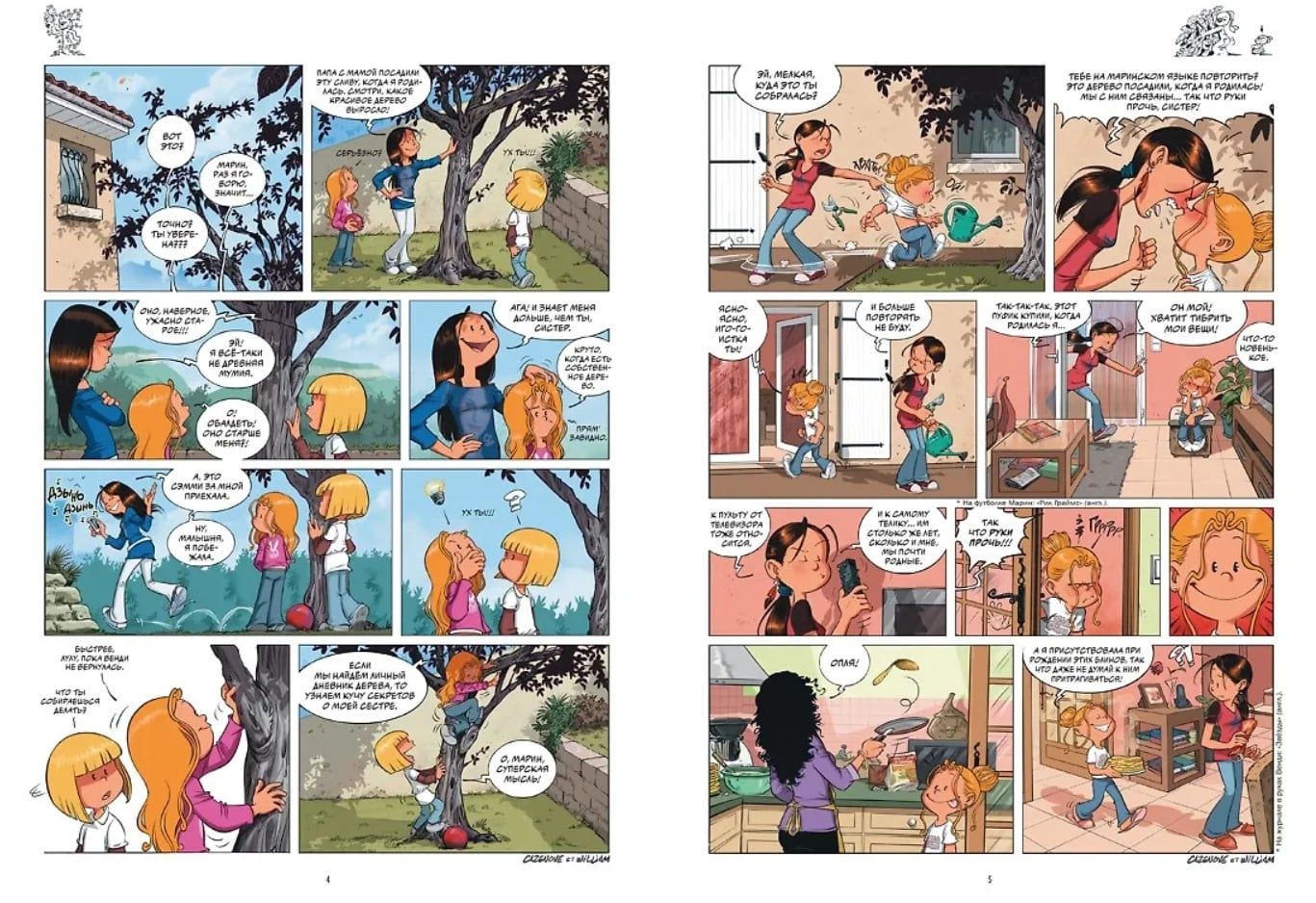 Kad piedzima Vendija, mamma un tētis pagalmā iestādīja koku. Gadu gaitā tas kļuva par īstu Vendijas draudzeni. Protams, arī Marina ļoti vēlas koku vai vismaz kaut ko savu. Bet te nu ir problēma: viss mājā tika nopirkts pirms viņas dzimšanas! Tikai pankūkas, ko mamma cepa, pilnībā pieder Marinai. Bet televizora pults un pufs joprojām pieder vecākajai. Ak, labi, es to īsti negaidīju!