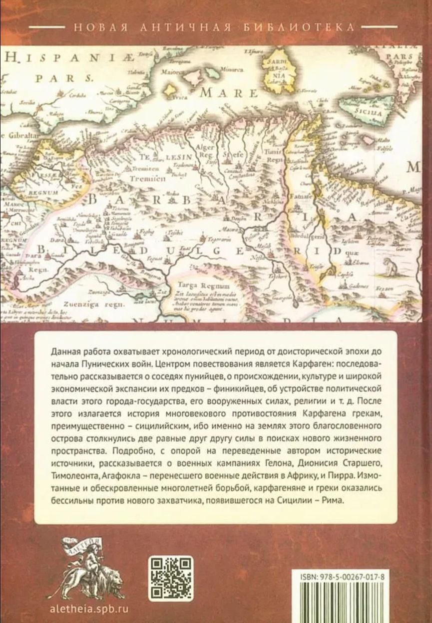 Šis darbs ir pirmais no diviem, kas veltīti Ziemeļāfrikas vēsturei, aptverot hronoloģisko periodu no aizvēstures līdz Pūniešu karu sākumam. Stāstījuma centrā ir Kartāga: tajā secīgi aprakstīti pūniešu kaimiņi, viņu feniķiešu senču izcelsme, kultūra un plašā ekonomiskā ekspansija, šīs pilsētvalsts politiskā struktūra, tās bruņotie spēki, reliģija utt. Pēc tam tiek stāstīts par Kartāgas gadsimtiem ilgo konfrontāciju ar grieķiem, galvenokārt sicīliešiem, jo tieši šīs svētītās salas zemēs divas vienlīdzīgas lielvalstis sadūrās, meklējot jaunu dzīves telpu. Balstoties uz autora tulkotiem vēstures avotiem, tajā detalizēti aprakstītas Gelona, Dionīsija Vecākā, Timoleona, Agatokla (kurš pārnesa karu uz Āfriku) un Pirra militārās kampaņas. Gadu gaitā cīņu izsmelti un noasiņojuši, kartāgieši un grieķi bija bezspēcīgi pret jauno iebrucēju, kas parādījās Sicīlijā, – Romu.