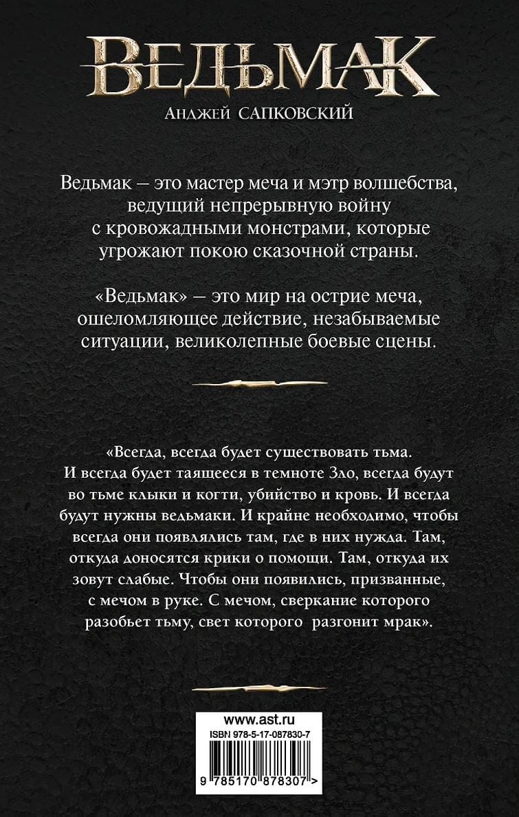 "Vienmēr, vienmēr būs tumsa. Un tumsā vienmēr slēpīsies Ļaunums, vienmēr būs ilkņi un nagi, slepkavības un asinis. Un vienmēr būs vajadzība pēc raganām. Un ir svarīgi, lai tās parādītos tur, kur tās ir vajadzīgas. Tur, kur ir saucieni pēc palīdzības. Tur, kur vājinieki viņus sauc pēc palīdzības. Lai tās parādās ar zobenu rokā. Ar zobenu, kura mirdzums izkliedēs tumsu, kura gaisma izkliedēs drūmumu."
