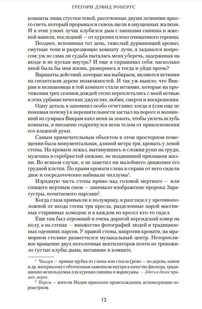 "Shantaram" bija atzīšanās no cilvēka, kuram izdevās izkļūt no bezdibeņa un izdzīvot, lauzts mākslinieciskā formā, pārdodot četrus miljonus eksemplāru visā pasaulē (pusmiljonu no tiem Krievijā) un izpelnoties entuziasma pilnus salīdzinājumus ar jaunā laikmeta labāko rakstnieku darbiem no Melvilas līdz Hemingvejam. Cienījamais Džonatans Kerols rakstīja: “Cilvēkam, kuru Šantarams nav dziļi aizkustinājis, vai nu nav sirds, vai tas ir miris... Šantarams ir mūsu gadsimta tūkstoš un viena nakts. Šī ir nenovērtējama dāvana ikvienam, kam patīk lasīt." Un tagad, visbeidzot, G.D.Roberts ir uzrakstījis turpinājumu stāstam par Linu, sauktu par Šantaramu, kurš izbēga no Austrālijas stingrās drošības cietuma un kļuva par viltotāju un kontrabandistu Bombejā. Tātad ir pagājuši divi gadi, kopš Lins zaudēja divus sev tuvākos cilvēkus: Afganistānas kalnos mirušo mafijas bosu Haderbhaju un noslēpumaino, iekārojamo skaistuli Karlu, kura apprecējās ar Bombejas mediju magnātu. Tagad Linam jāizpilda pēdējais Haderbhai dotais uzdevums, jāiekaro kalnā mītošā gudrā uzticība, jāglābj galva jauno mafijas vadoņu nevaldāmi uzliesmojošajā konfliktā, bet galvenais – jāatrod mīlestība un ticība.