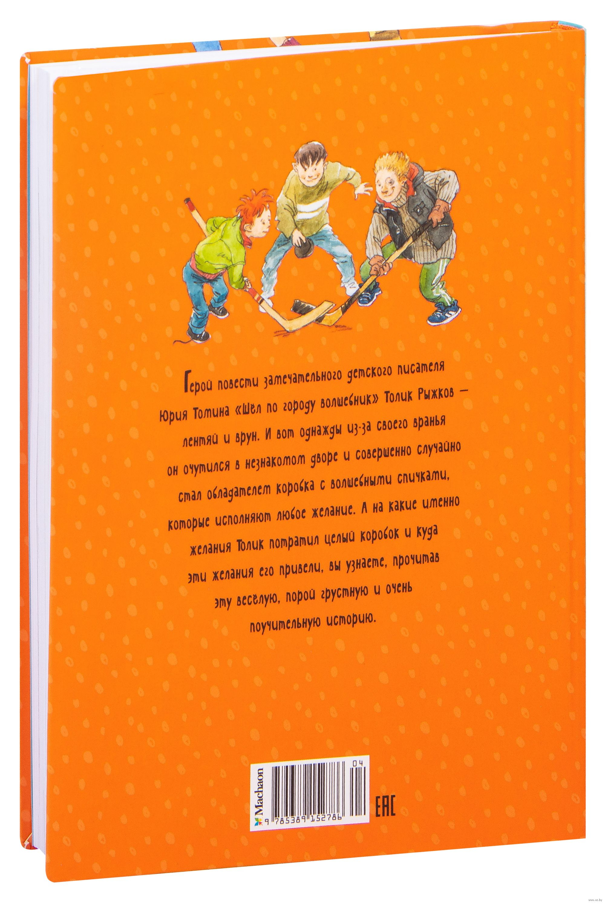 Brīnišķīgā bērnu rakstnieka Jurija Tomina stāsta "Pa pilsētu staigāja burvis" varonis Toliks Rižkovs ir slinks un melis. Un kādu dienu savu melu dēļ viņš nokļuva svešā pagalmā un nejauši kļuva par burvju sērkociņu kastītes īpašnieku, kas piepilda jebkuru vēlēšanos. Un kādām vēlmēm Toliks iztērēja visu kastīti un kur šīs vēlmes viņu aizveda, uzzināsiet, lasot šo jautro, brīžiem skumjo un ļoti pamācošo stāstu. Stāsts pirmo reizi tika publicēts 1963. gadā, un kopš tā laika tas tiek nepārtraukti pārpublicēts, un pēc tā motīviem tika uzņemta filma "Dzelzs durvju noslēpums".