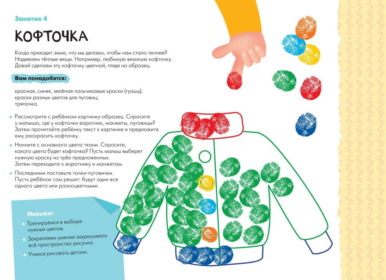 - zīmējumi, izmantojot krāsas un otu (albums “Zīmēšana ar krāsām”).