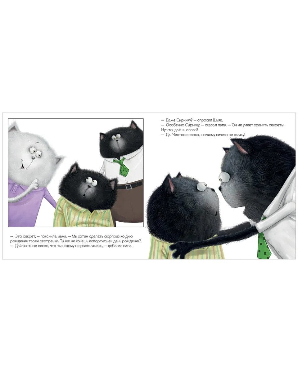 Kaķēns Šmjaks ir uzzinājis, ka mamma un tētis grasās pārsteigt viņa mazo māsu dzimšanas dienā, aizvedot visus uz atrakciju parku "Kaķu karaliste". Vecāki lūdza viņam saglabāt noslēpumu līdz nedēļas nogalei un nevienam, pat labākajam draugam Čīsam, par to nestāstīt. Kāds izaicinājums Šmjakam! Vai viņš spēs saglabāt noslēpumu?