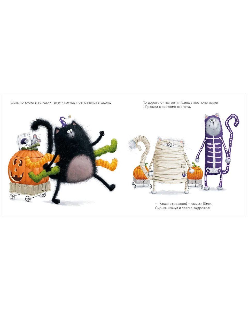 Šmjaka klasē kaķēni gatavojas svinēt Helovīnu. Programmā ir iekļauti biedējoši stāsti ķirbju laternu gaismā un balva par visbiedējošāko attēlu. Šmjaks ļoti vēlas uzvarēt konkursā, bet viņš nezina, kā... Galu galā viņš baidās pat no maza zirnekļa, viņa slota ir salauzta, un viņa iedomātā kleita izraisa tikai smieklus. Pēkšņi šausmu stāstu stāstīšanas laikā sākās īsta burzma, un, kad Puhlisas kundze ieslēdza gaismu...