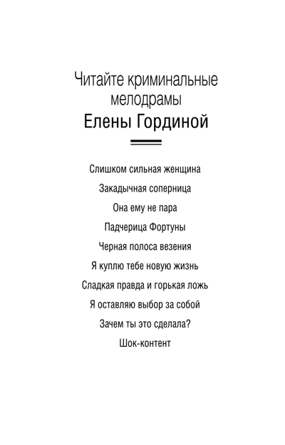 "Šoka saturs" ir aizraujoša jauna grāmata no psiholoģiskā romāna meistares Jeļenas Gordinas. Savās grāmatās Gordina izvirza sarežģītas un nopietnas tēmas. Viņas grāmatas nekādā gadījumā nav izklaidējoša lasīšana. Var viņus mīlēt, var ienīst, taču visam seriālam ir viena kopīga iezīme - nav iespējams atrauties no Gordina kriminālmelodrāmām...