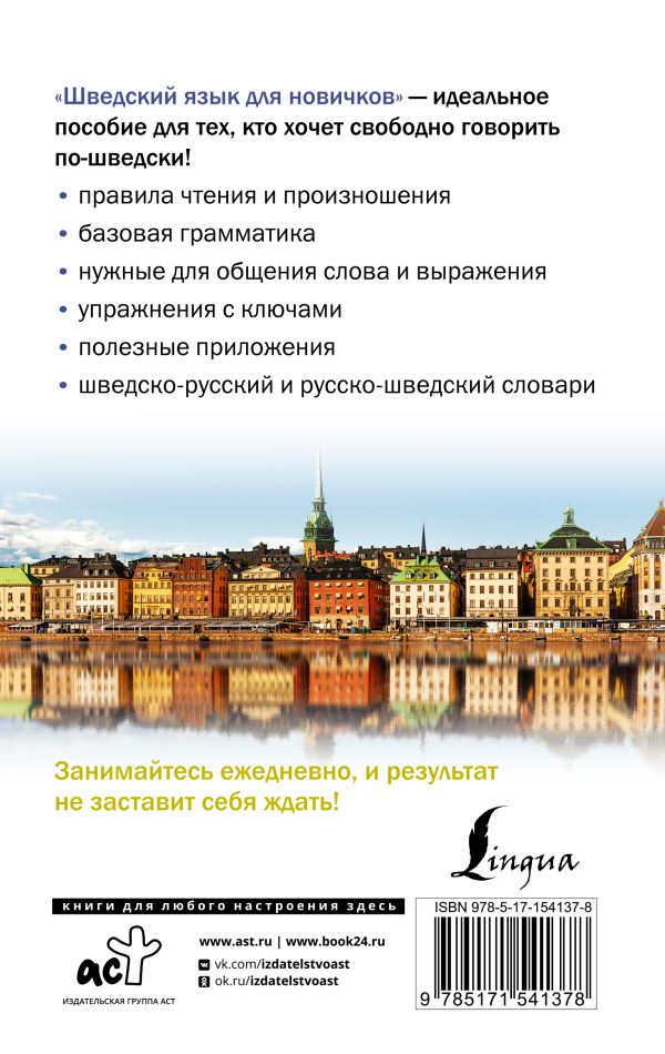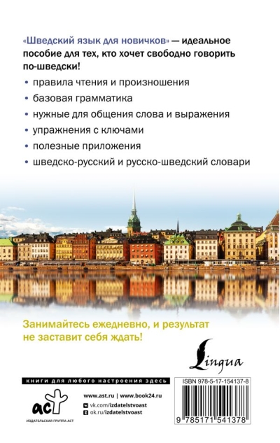 Sergejs Aleksandrovičs Matvejevs ir visvairāk pārdoto grāmatu autors svešvalodu nišā, poliglots un unikālas valodu mācīšanas metodikas autors. Šī pašmācības grāmata palīdzēs lasītājiem apgūt zviedru valodu līdz A2 līmenim bez skolotāja palīdzības. Šeit atradīsiet lasīšanas un izrunas noteikumus, vārdu krājumu, gramatikas pamatus, noderīgas lietojumprogrammas, kā arī zviedru-krievu un krievu-zviedru vārdnīcas. Sekmīgam apgūto tēmu nostiprināšanai ir uzdevumi, kuru atbildes atradīsiet mācību grāmatas beigās. Šī mācību grāmata ir paredzēta visiem, kas zviedru valodu apgūst patstāvīgi.