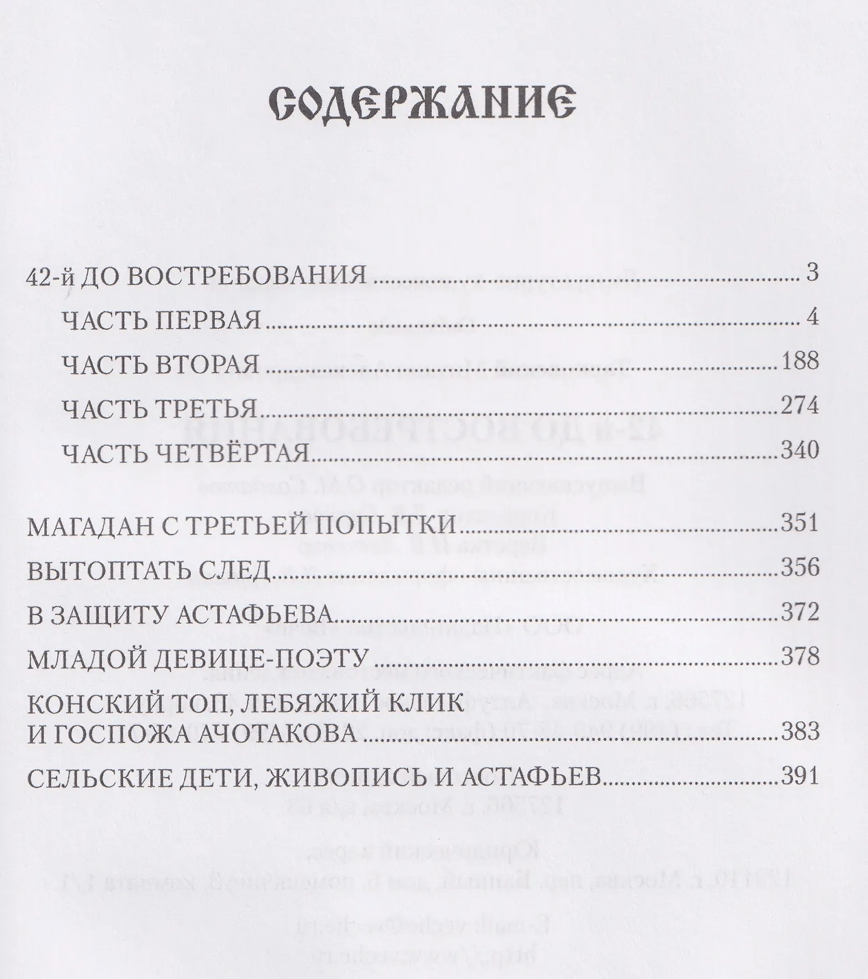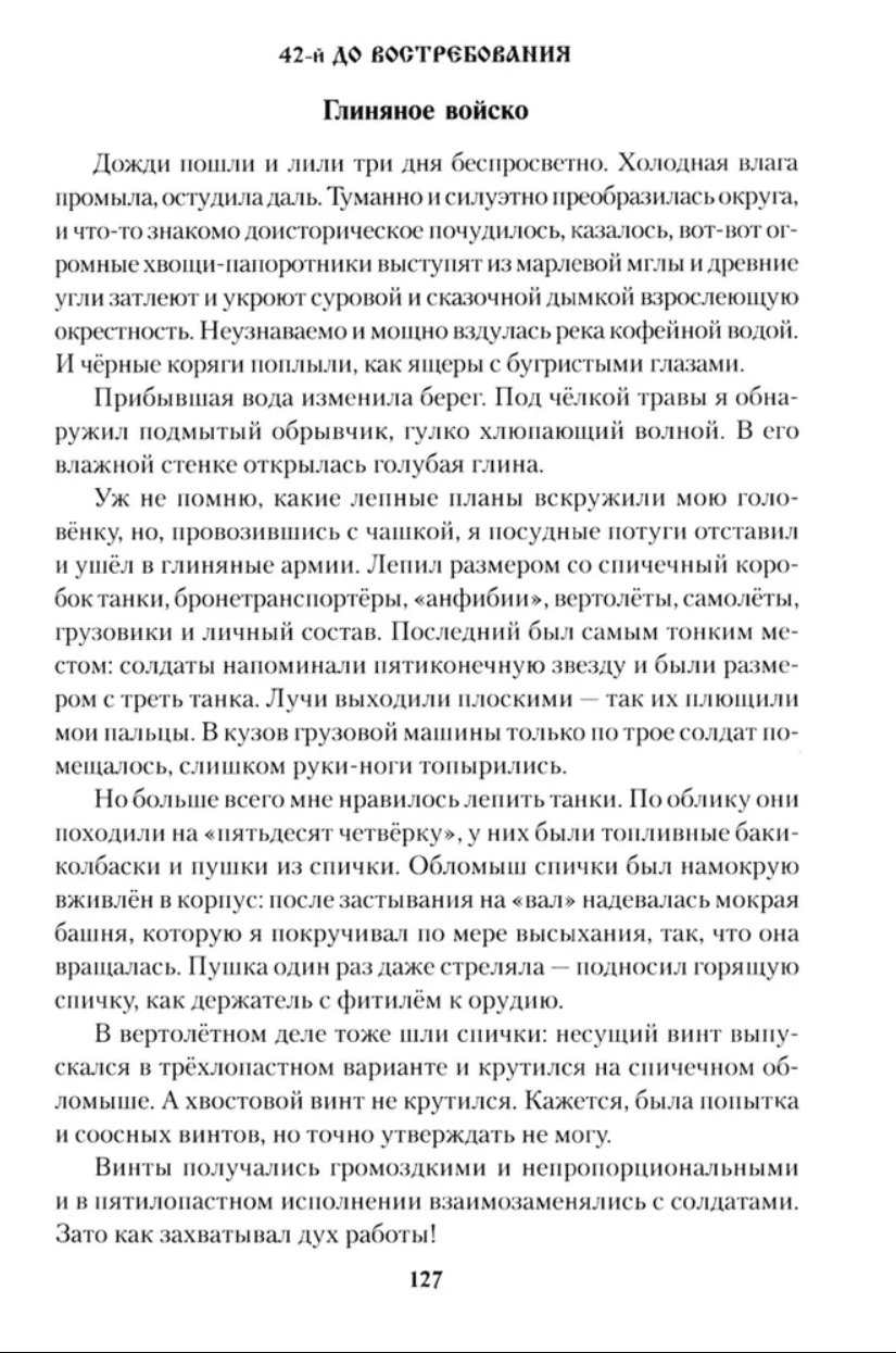 Mihaila Tarkovska jauno darbu krājumu iesāk viņa memuāri "42. atlicis laiks", kuros rakstnieks atstāsta savu bērnības stāstu. Šo plašo memuāru centrālā figūra ir rakstnieka vecmāmiņa Marija Ivanovna Višņakova, kas iemieso daudzas krievu sievietes vērtīgās īpašības, kura pārcieta grūtības un trūkumu, tomēr saglabāja šķīstību un mīlestību, pacietību un nesavtību savā dvēselē.
