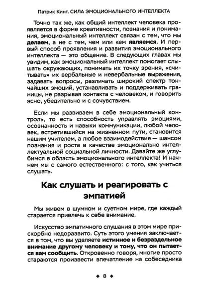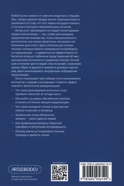 . Izveidojiet paliekošu pirmo iespaidu - liksiet cilvēkiem iekārot jūsu kompāniju. "Emocionālās inteliģences spēks" ir tik praktiska grāmata, cik vien praktiska var būt. Jūs uzzināsiet paņēmienus, kurus uzreiz varēsiet izmēģināt uz apkārtējiem - un apbrīnot, cik daudz līdz šim esat palaiduši garām! Jūs gūsiet padziļinātu izpratni par emocionālo inteliģenci un plašo cilvēku smalko emociju spektru. Sapratīsiet, cik daudz vieglāk ir iegūt draugus un piesaistīt biznesa partnerus, zinot, kā analizēt viņu iekšējo motivāciju. Meklēsiet īsākos veidus, kā nodibināt kontaktus ar citiem cilvēkiem.
