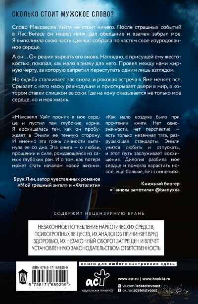 Maksvela Vaita vārds nav nekā vērts. Pēc briesmīgajiem notikumiem Lasvegasā viņš mani atrada, deva solījumu un pretī paņēma manu. Es izpildīju savu daļu no darījuma: es saliku kopā savu salauzto sirdi. Un viņš... Viņš nolēma to atkal izraut. Spilgti, ar savu raksturīgo nežēlību, viņš parādīja, cik maz es viņam nozīmēju. Viņš novilka starp mums drosmīgu robežu, aizliedzot man to pārkāpt ar vienu skatienu.