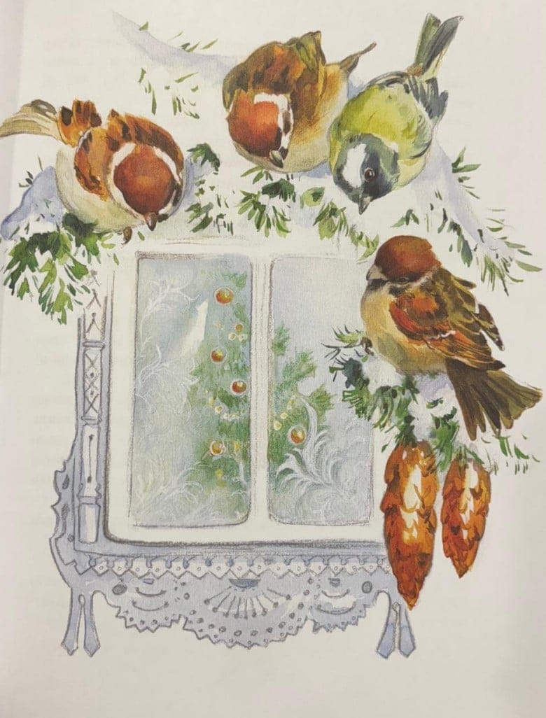 Kādu nakti jauna zīlīte vārdā Zinka, kura bija gulējusi zvirbuļu ligzdā virs loga, tika pamodināta no skaļa trokšņa. Viņa ieskatījās iekšā un ieraudzīja lielu, izrotātu Ziemassvētku eglīti un apkārt priecīgus bērnus. No rīta zvirbuļi pastāstīja Zinkai par Jauno gadu un divpadsmit mēnešiem...