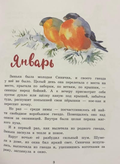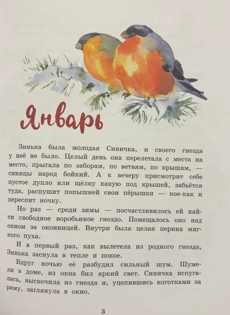 Tā sākas Vitālija Bjanka pasaka, kurā katrs gada mēnesis atklājas caur putnu un citu meža iemītnieku dzīvi. Katrs mēnesis Zinkai nes jaunus atklājumus: janvārī viņa meklē barību skarbajā aukstumā; pavasarī viņa priecājas par pirmo sauli un klausās putnu dziesmās, kas atgriežas no dienvidiem; vasarā viņa vēro, kā aug jaunie dzīvnieki; un rudenī viņa vēro, kā krīt lapas un dzīvnieki gatavojas ziemai.