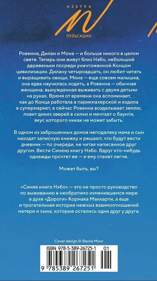 "Nebo zilā grāmata" ir ne tikai izdzīvošanas ceļvedis neatgriezeniski mainītā pasaulē Kormaka Makārtija romāna "Ceļš" garā, bet arī aizkustinošs stāsts par maigām attiecībām starp māti un dēlu, kuri paliek vieni viens ar otru.