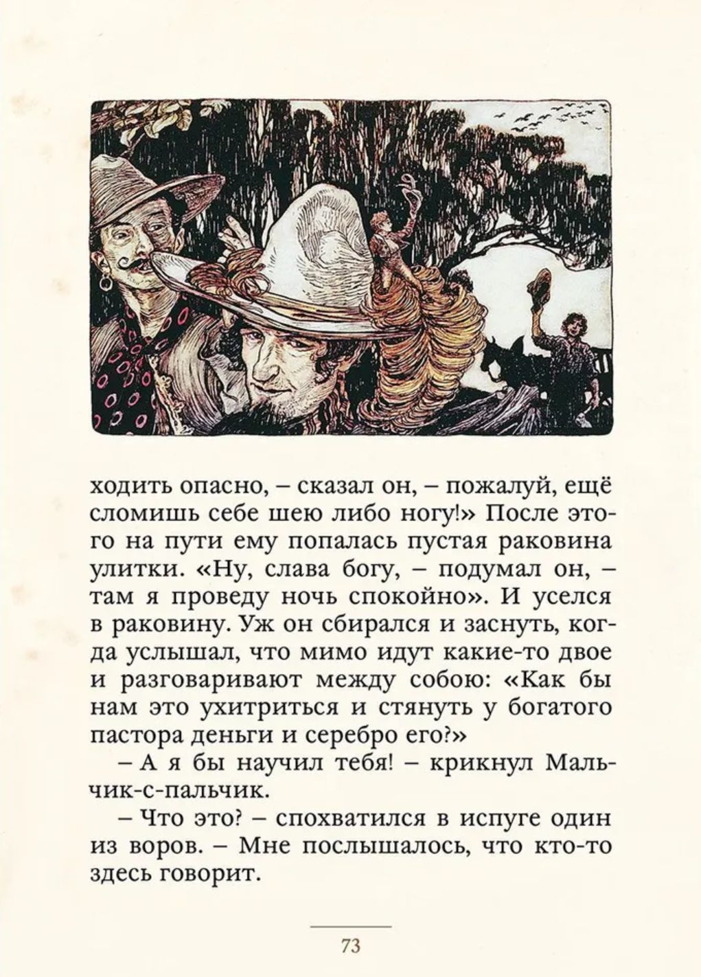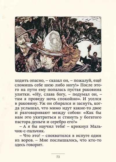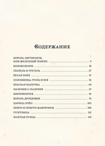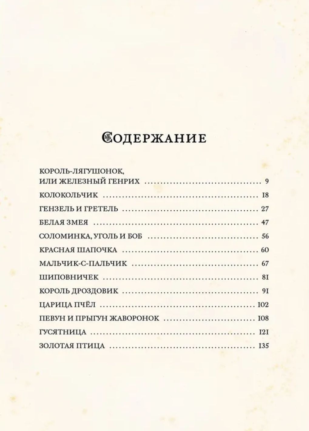 Jakoba un Vilhelma Grimmu apkopotie klasiskie stāsti ir tulkoti P. N. Polevoja rediģētā tulkojumā, kurš rūpīgi saglabājis vācu folkloras garu.