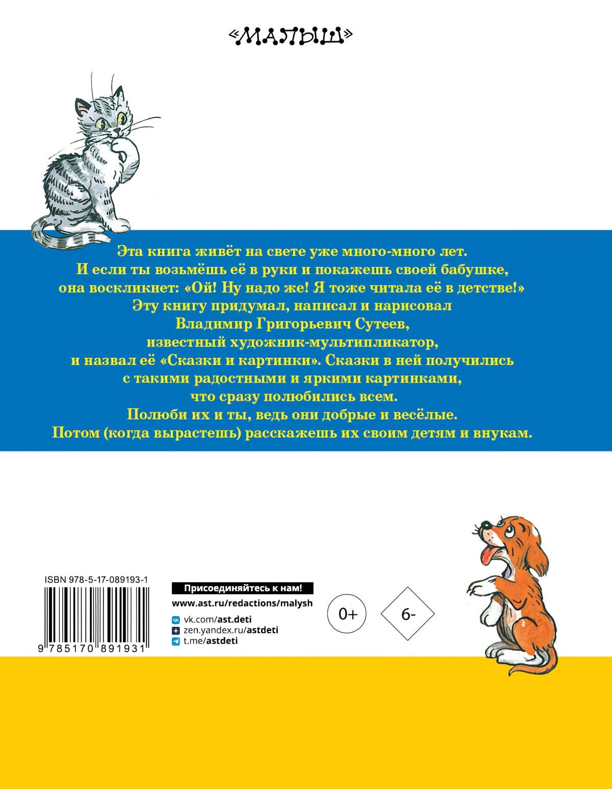 Šī grāmata pastāv jau daudzus, daudzus gadus. Un ja tu turēsi to rokā un parādīsi vecmāmiņai, viņa teiks: Aiziet! Es to arī lasīju kā bērns! Un šo grāmatu izgudroja, sarakstīja un zīmēja Vladimirs Grigorjevičs Sutejevs, slavens karikatūrists, un nosauca to par „Fairy Tales and Pictures”. Pasakas izrādījās ar tik priecīgiem un spilgtiem attēliem, ka visi uzreiz mīlēja. Mīlestība tos pārāk, jo tie ir labi un jautrs. Tad, kad tu izaugsi, pasaki to saviem bērniem un mazbērniem.