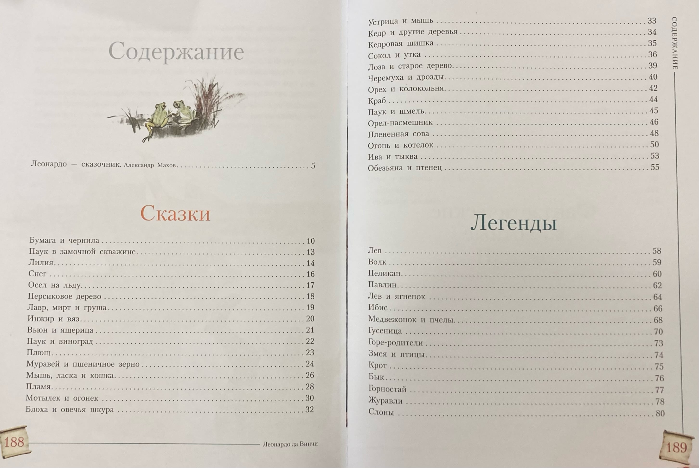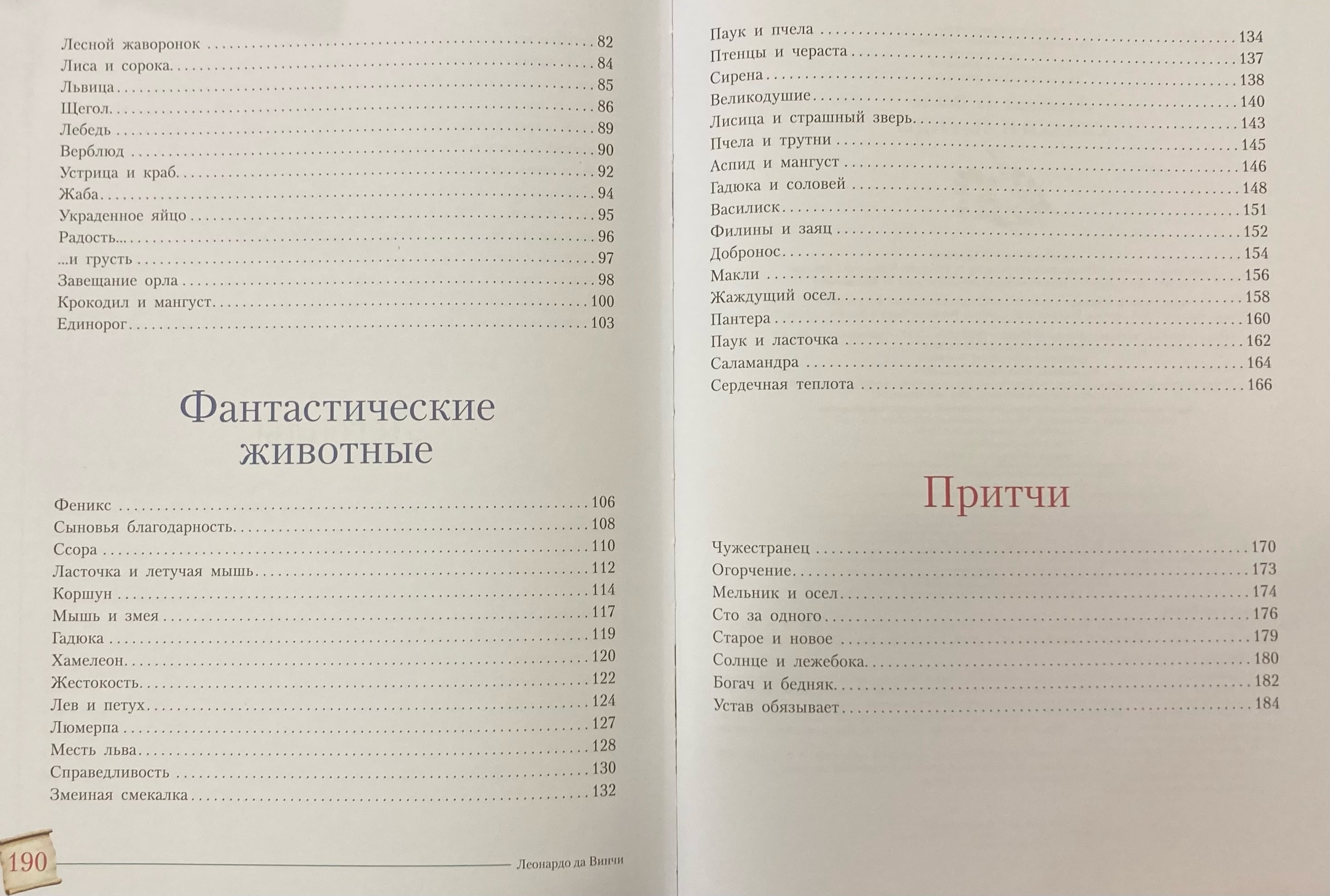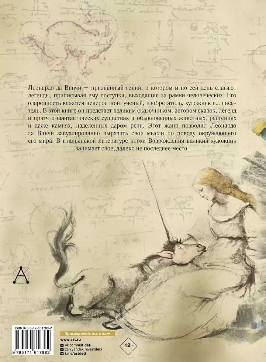 Izdevumā "Pasakas un leģendas" iekļautas Leonardo da Vinči - atzīta ģēnija, zinātnieka, rakstnieka, izgudrotāja un mākslinieka, kura darbus cilvēce ar interesi pēta vēl šodien - pasakas, leģendas un līdzības. Grāmatā ir stāsti par dažādiem dzīvniekiem un pat fantastiskām būtnēm - bazilišku, salamandru, sirēnu... Saprotami un pieejami, šie stāsti vienlaikus ir ļoti daudzpusīgi un dziļi un dod lasītājam iemeslu aizdomāties par svarīgākajām lietām, par dzīvi, par labo un ļauno. Caur tiem Leonardo da Vinči dalās ar lasītāju savā izpratnē par apkārtējo pasauli.