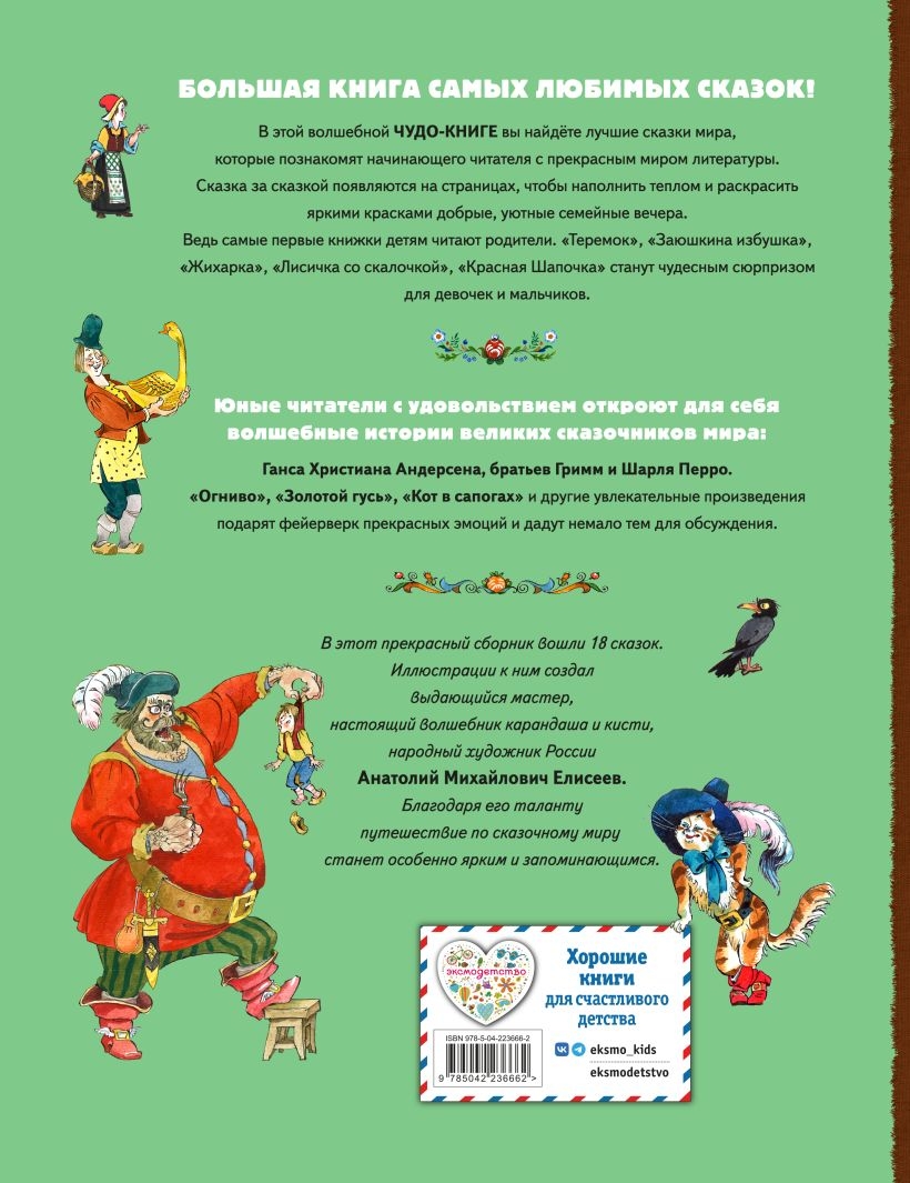 Zem šīs brīnišķīgās grāmatas vāka slēpjas zelta kolekcija ar skaistākajām pasakām, kas bērnību apgaismo ar maģisku laipnības un skaistuma gaismu. Tādas krievu tautas pasakas kā "Mazais Teremoks", "Zaķa būda", "Žiharka", "Lapsa ar mīklas rulli" un "Havrošečka" ir lieliska izvēle bērna pirmajai saskarsmei ar šo brīnišķīgo pasauli.