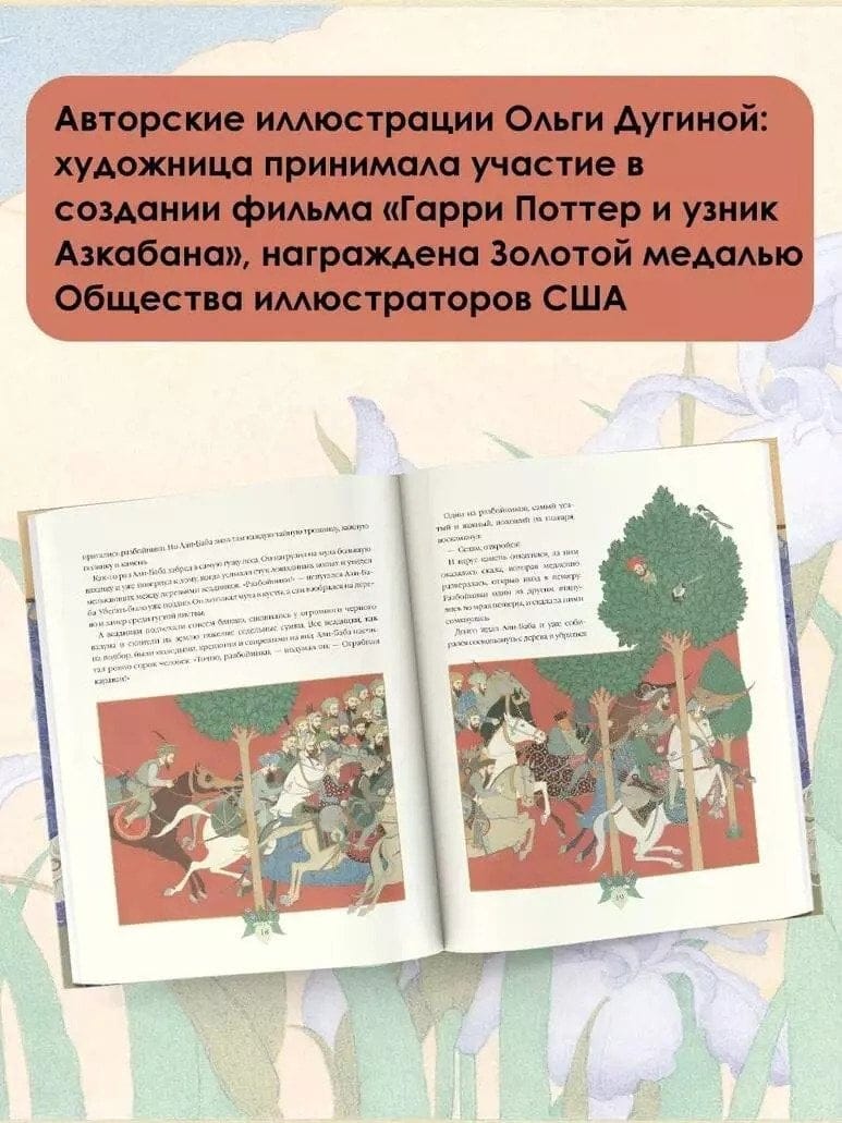 "Tūkstoš un vienas nakts pasakas" ir īsts viduslaiku austrumu kultūras piemineklis, un tā rašanās noslēpumu vēsturnieki un literatūrzinātnieki joprojām neatklāj. Stāsti par brīnumiem un neparastiem piedzīvojumiem un satriecošas slavenās mākslinieces Olgas Duginas ilustrācijas pārnesīs lasītāju maģiskajā austrumu pasaku pasaulē!
