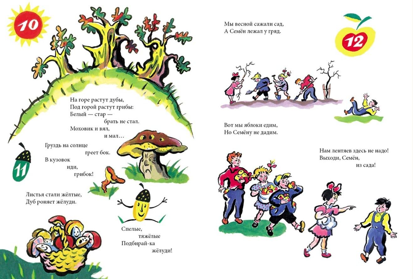 Grāmatā ir smieklīgi mēles mežģi, noderīgi skaitīšanas dzejoļi, asprātīgas mīklas un pat rotaļīgi āķīgi uzjautrinājumi. Tajā atradīsiet dzeguzi ar kapuci, bailīgi drebošus ežus, Ņevas upē peldošu vali, lēnprātīgo Ņušu, gaismas ēdāju Kešku un daudzus citus neparastus tēlus un stāstus. Ivana Demjanova dzejoļi, ko ilustrējis Boriss Kalaušins, ir īsi stāsti attēlos, bieži smieklīgi, bet dažreiz arī pamācoši.