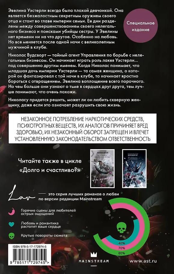 Evelīna Vesterlija vienmēr ir bijusi slikta meitene. Viņa ir sava tēva nežēlīgais slepenais ierocis un ģimenes impērijas galva. Viņas dienas ir sadalītas starp nelegālā biznesa pilnveidošanu un māsas slepkavas meklēšanu. Evelīnai neatliek laika nekam citam, īpaši mīlestībai. Taču viss mainās pēc vienas nakts ar satriecošu vīrieti klubā.