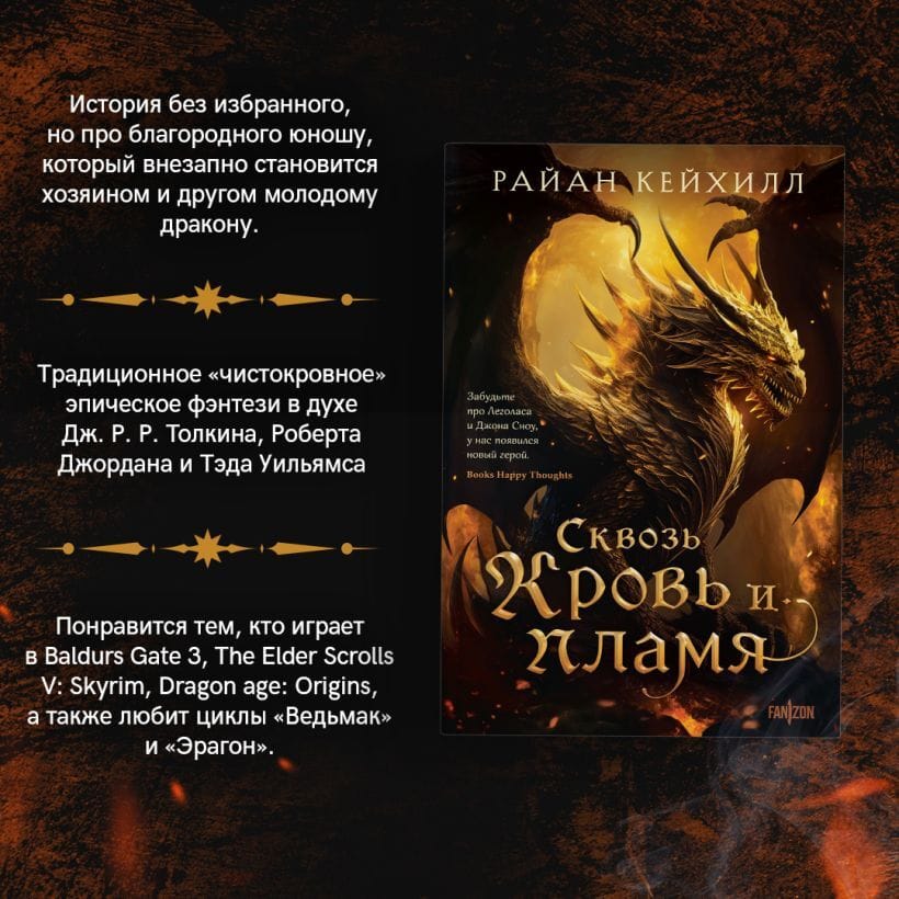 Ēteriju ir pārņēmis karš. Gadsimtu pēc gadsimta dienvidu valdnieki savā starpā karo, un tikai Pūķu sardze, senas impērijas karavīri, pasargā pasauli no asiņaina plūduma. Kaelens Briārs gatavojas Drosmes un Prasmju pārbaudījumam, neraugoties uz ilgām pēc traģiski bojā gājušā brāļa. Taču viņa dzīve mainās, kad viņa dzimtajā ciematā parādās trīs svešinieki. Viņus vieno noslēpums, kas liek nāvei sekot līdzi un izmainīs Kaleena dzīvi. Pravietojums neeksistē. Viņa atnākšana nebija pareģota. Un Kaelens, tāpat kā jebkurš cits vīrietis, nokraujas līdz nāvei. Viņš izies cauri kara liesmām un zaudēs visus, kurus mīl.