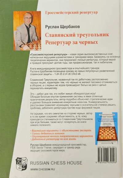 Lielmeistara Ruslana Ščerbakova grāmata ir veltīta slāvu aizsardzības apjomīgajiem un nozīmīgajiem aspektiem – vienai no populārākajām mūsdienu dekādēm. Slāvu trijstūris, kas nosaukts pēc melno bandinieku sākuma izvietojuma, raksturojas ar to, ka melnie nevēlas pasīvi sēdēt aizsardzībā, bet jau no pirmajiem gājieniem uzņemas risku un provocē baltos uzņemties risku, lai pārņemtu iniciatīvu. Šī ir debija tiem, kam patīk dzīvīga, divējāda spēle! Ar plašu pieredzi sistēmas lietošanā un izciliem praktiskiem rezultātiem autors detalizēti izskaidro stratēģiskās idejas un pievērš lielu uzmanību konkrētām niansēm. Uzstādījuma universālums ļauj spēlētājam ar melnajiem lielā mērā atrisināt sākuma repertuāra problēmu pret dāmas bandinieka gājienu. Neslēpjot, ka viņa simpātijas ir melno pusē, autors vienlaikus saglabā objektivitāti, un arī tie, kuriem, spēlējot balto, jātiek galā ar slāvu trijstūri, no grāmatas var gūt daudz noderīgas informācijas.