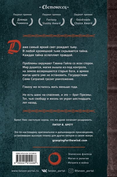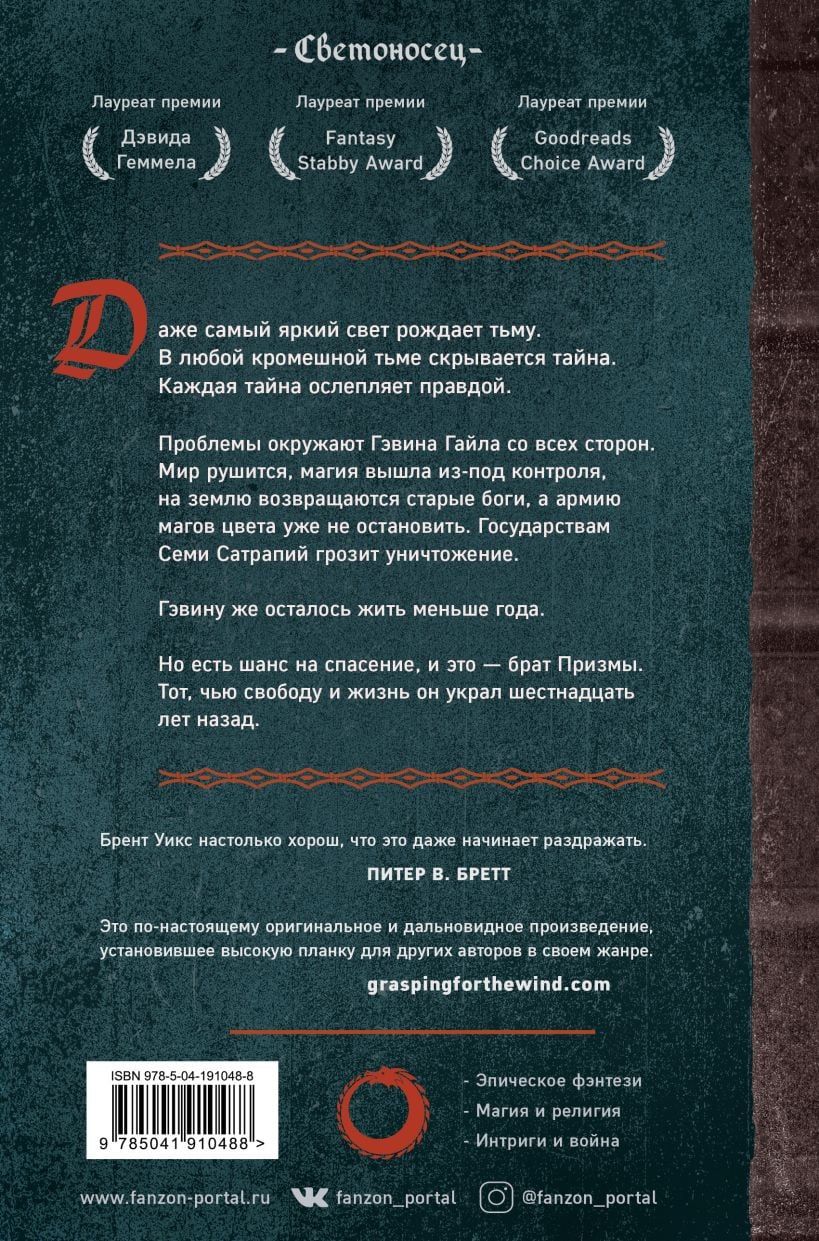 Viņš bija cerējis uz pieciem gadiem, bet tagad viņam atlicis mazāk nekā gads. Piecdesmit tūkstoši bēgļu, ārlaulības dēls un bijusī līgava, kas, šķiet, ir uzzinājusi Prizmas ļaunāko noslēpumu - nepatikšanas ieskauj Gevinu no visām pusēm. Visa pasaules maģija ir kļuvusi nekontrolējama un draud iznīcināt Septiņas satrapijas.