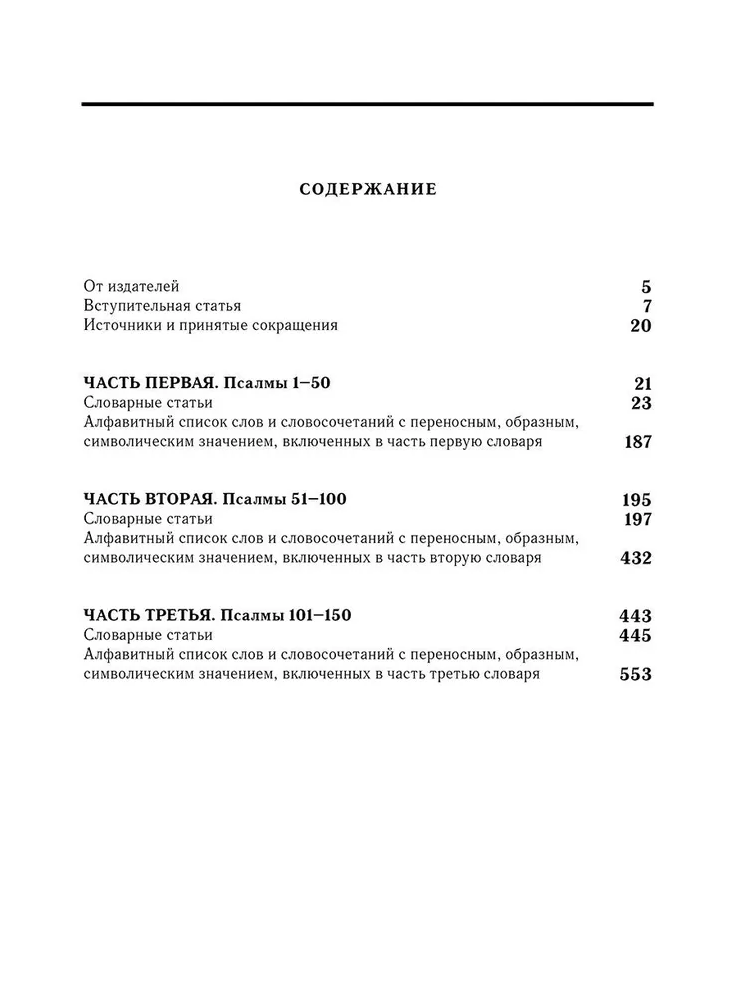 Vārdnīcā figurāli, simboliskā, simboliskā nozīmē ir attēlota vārdnīcā Psalter lietotā vārdnīca. Grāmatas nepieciešamība saistīta ar to, ka psalmi, attēlojot noteiktus notikumus ķēniņa Dāvida dzīvē, pravieto par Jaunās Derības nākotnes notikumiem.