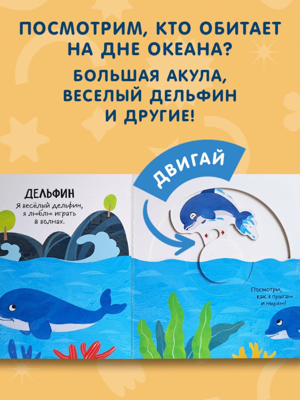 Spilgti attēli un vienkārši, jautri teksti iepazīstinās jūsu bērnu ar pirmajiem interesantajiem faktiem par jūras dzīvi. Savukārt kustīgās daļas palīdzēs attīstīt smalko motoriku, uzmanības noturību un iztēli.