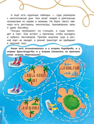 Un grāmatā uzzināsi arī par senajiem transporta veidiem, par to, kas ir kartes, un daudz ko citu. Materiālu nostiprināt palīdzēs labirinti un citi uzdevumi. Atver grāmatu — dosimies ceļā!