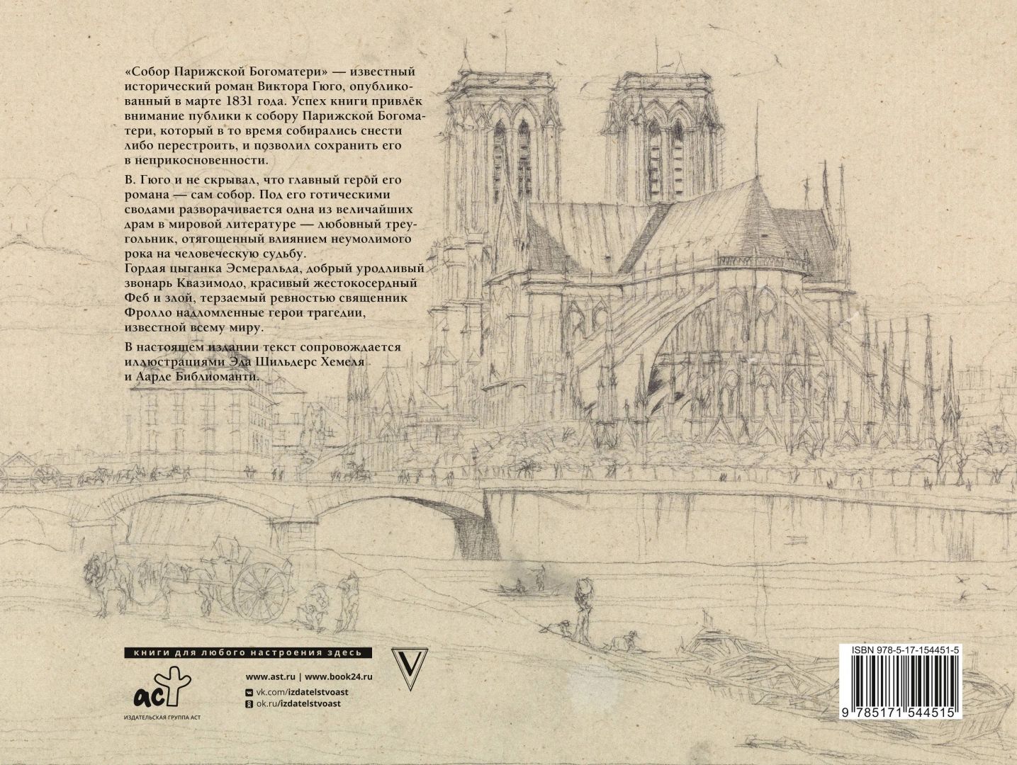 V. Hugo neslēpa, ka viņa romāna galvenais varonis bija pati katedrāle. Zem tās gotiskajiem velvēm risinās viena no lielākajām drāmām pasaules literatūrā - mīlas trijstūris, ko apgrūtina nepielūdzama likteņa ietekme uz cilvēka likteni. Lepnā čigāniete Esmeralda, laipnais neglītais zvaniķis Kvazimodo, skaistais cietsirdīgais Feba un ļaunais, greizsirdīgais priesteris Frollo ir salauztie traģēdijas varoņi, kurus pazīst visa pasaule. Šajā izdevumā tekstu papildina Eda Šildersa Hamela un Aardes Bibliomanti ilustrācijas.
