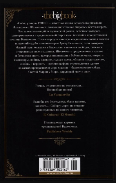 Spāņu rakstnieka Ildefonso Falkonesa debijas romāns, kas uzreiz kļuva par pasaules bestselleru. Grāmata izdota vairāk nekā 30 valstīs un pārdota vairāk nekā 2 miljonos eksemplāru; 2018. gadā pēc grāmatas motīviem tika uzņemts televīzijas seriāls. "Katedrāle pie jūras" ir aizraujošs vēsturisks romāns, kura darbība risinās viduslaiku Barselonā, bagātā un pārtikušā Katalonijas galvaspilsētā. Ar šo pilsētu uz visiem laikiem saistās galvenā varoņa Arno Estanjolas (Arnau Estanyola), kura tēvs, bēguļojošs kalps, šeit bija nonācis brīvības meklējumos, bēgot no sava kunga patvaļas, pilns kāpumu un kritienu likteņa. Viduslaiku tikumu nežēlība un muižnieku beztiesiskums, inkvizīcijas ugunsgrēki un buboņu mēris, intrigas un sazvērestības, kari, vardarbība, bads un asinis, viltība un nodevība, mīlestība un uzticība - tas viss uz viena no pasaules skaistākajiem tempļiem - Barselonas Svētās Marijas katedrāles pie jūras, spēka un gaismas devēja - būvniecības fona.