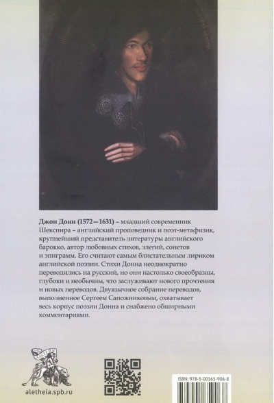 Džons Donns (1572 - 1631) - Šekspīra jaunāks laikmets - angļu sludinātājs un metafiziķis dzejnieks, lielākais angļu baroka literatūras pārstāvis, mīlas dzejoļu, elēģiju, sonešu un epigrammu autors. Viņš tiek uzskatīts par spožāko angļu dzejas lirikistu. Donnes dzejoļi daudzkārt tulkoti krievu valodā, taču tie ir tik savdabīgi, dziļi un neparasti, ka ir pelnījuši jaunus tulkojumus. Sergeja Sapožņikova bilingvālais tulkojumu krājums aptver visu Donna dzejas ķermeni un tam ir pieejams plašs komentārs.