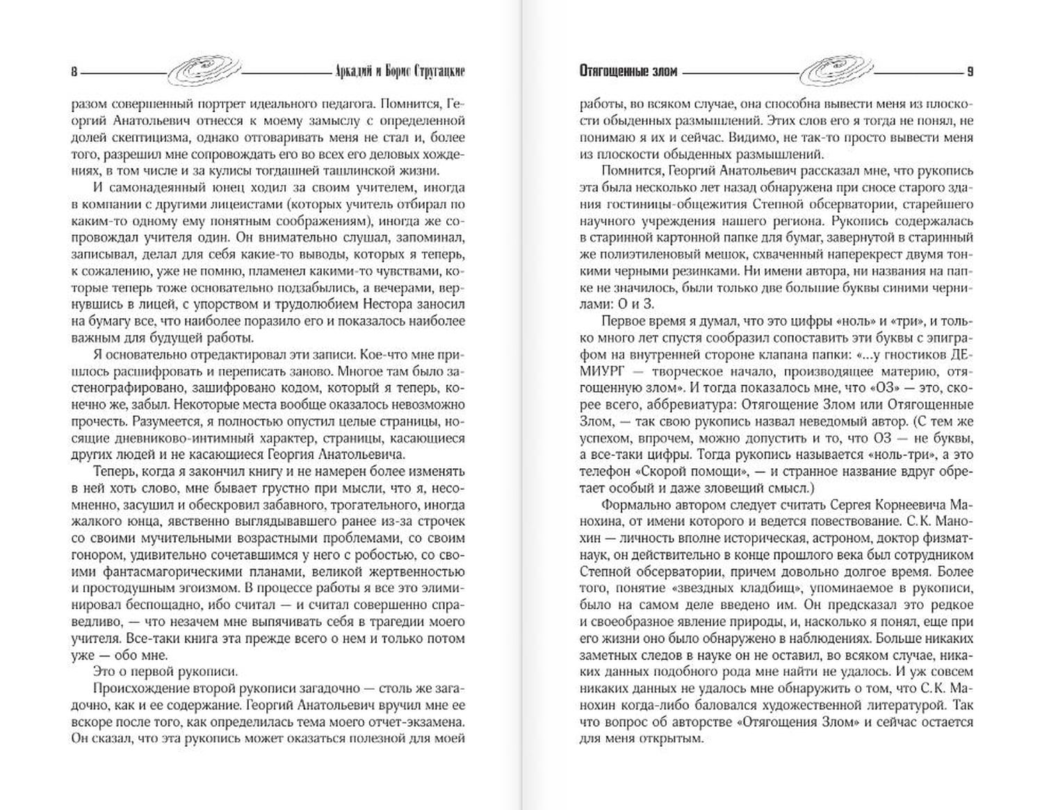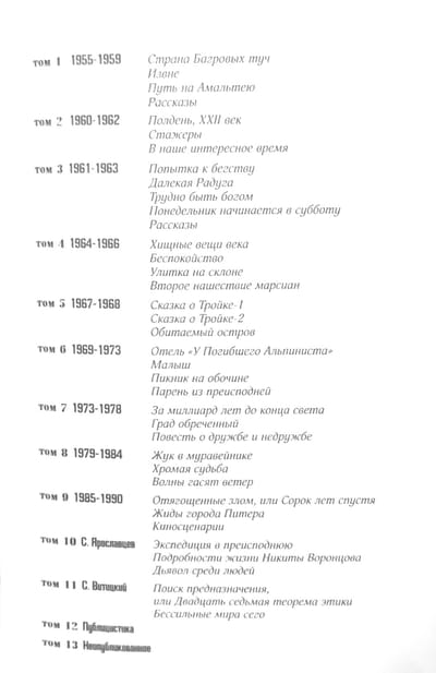 Arkādijs (1925–1991) un Boriss (1933–2012) Strugatskis bija krievu padomju zinātniskās fantastikas rakstnieki, kuri pacēla krievu zinātnisko fantastiku pasaules klases augstumos. Viņu grāmatas, kas tulkotas visās lielākajās valodās un kuru kopējā tirāža pārsniedz 500 miljonus eksemplāru, joprojām tiek pielāgotas ekrāniem, tiek apspriestas karsti un kalpo kā iedvesmas avots jaunajai rakstnieku un lasītāju paaudzei. Šajā sējumā ir “Ļaunuma nasta”, “Sanktpēterburgas ebreji” un iepriekš nepublicēti stāsti.