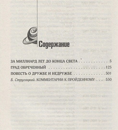 Šajā sējumā iekļautas grāmatas Miljardu gadu pirms pasaules gala; Nolādētā pilsēta; Stāsts par draudzību un nedraudzību.