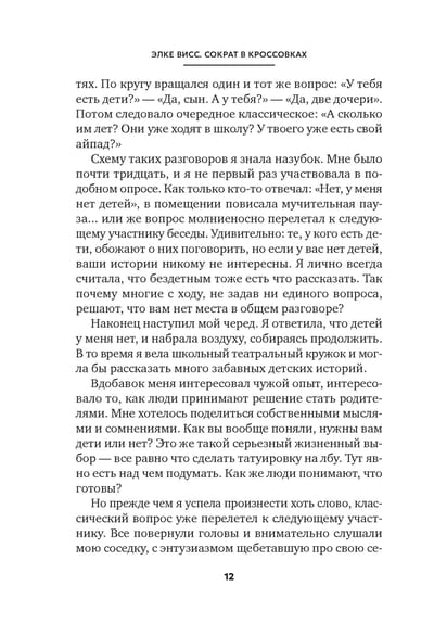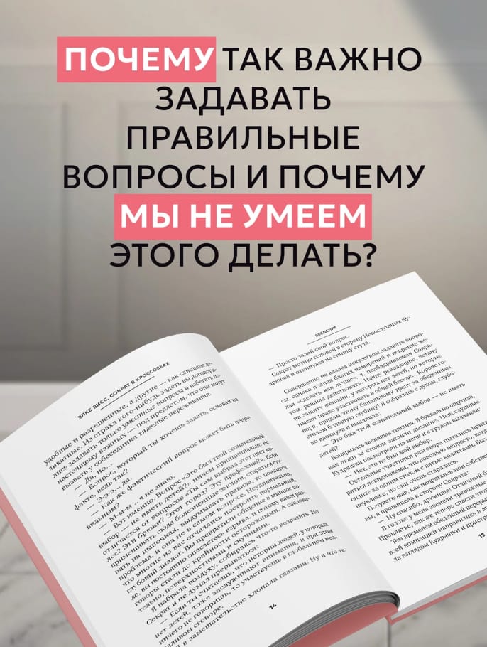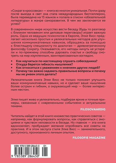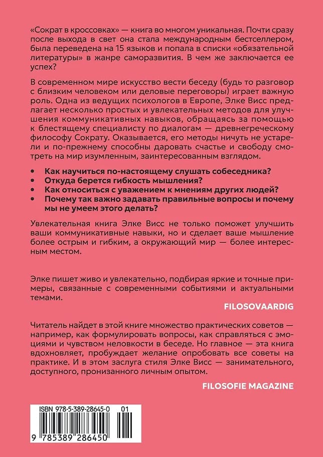 Mūsdienu pasaulē sarunu mākslai (gan ar mīļoto cilvēku, gan biznesa sarunās) ir būtiska loma. Viena no Eiropas vadošajām psiholoģēm Elke Vaisa piedāvā vairākas vienkāršas un saistošas metodes komunikācijas prasmju uzlabošanai, balstoties uz izcila dialoga eksperta — sengrieķu filozofa Sokrata — atziņām. Izrādās, ka viņa metodes nebūt nav novecojušas un joprojām var sniegt apņēmīgiem studentiem laimi un brīvību skatīties uz pasauli ar brīnišķīgu, ieintriģētu skatienu.